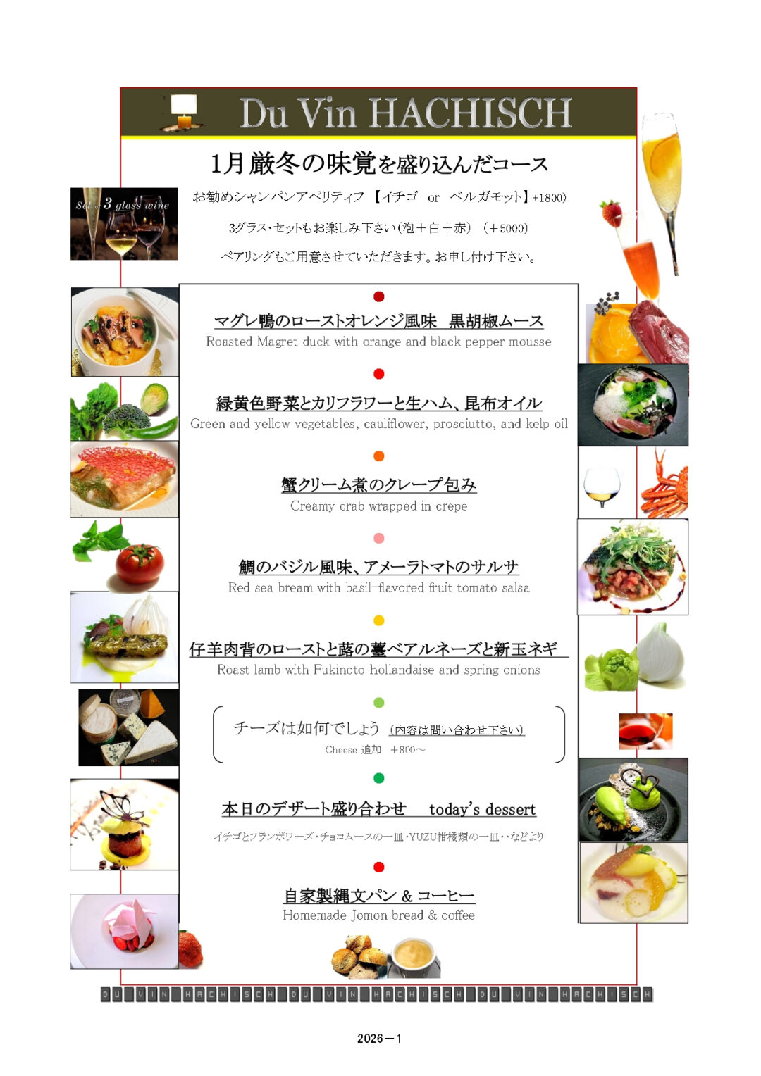 ※スペシャルコースもご用意できます。冬の名物、白子・あん肝・ウニをひと皿に仕立てた特別料理をはじめ、牡蠣、フォアグラ、オマール海老、トリュフ料理なども対応可能です。最後の美食をお楽しみ下さい。 045-319-4844