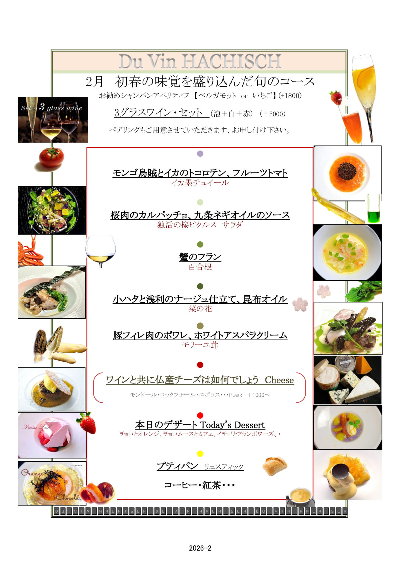 | ワインペアリング お問い合わせください | お料理の皿数内容等により変動 |